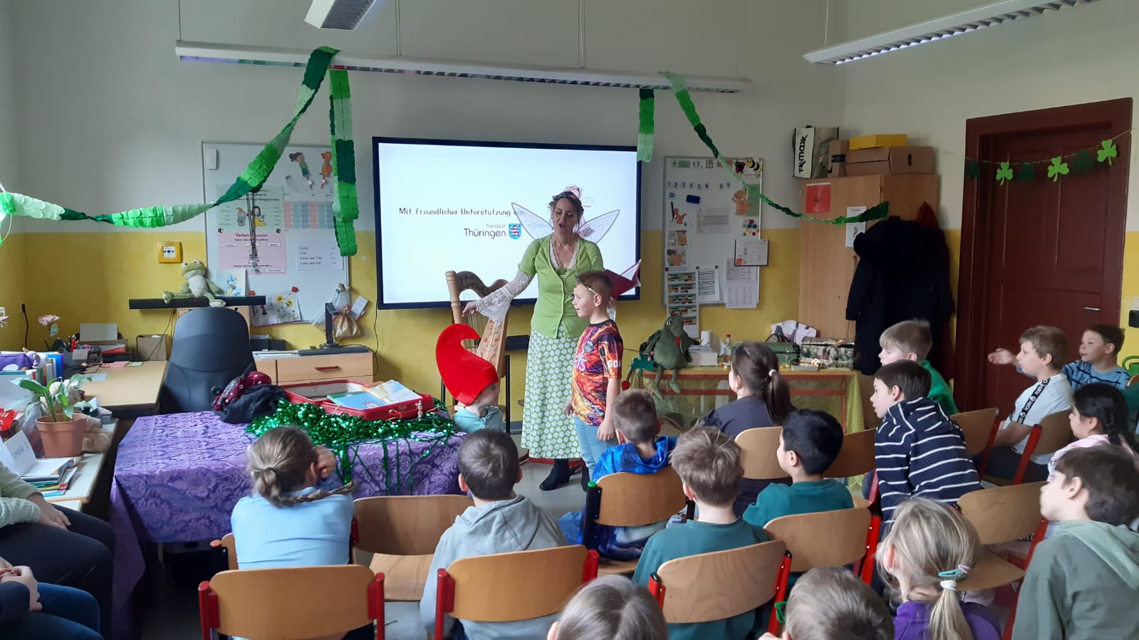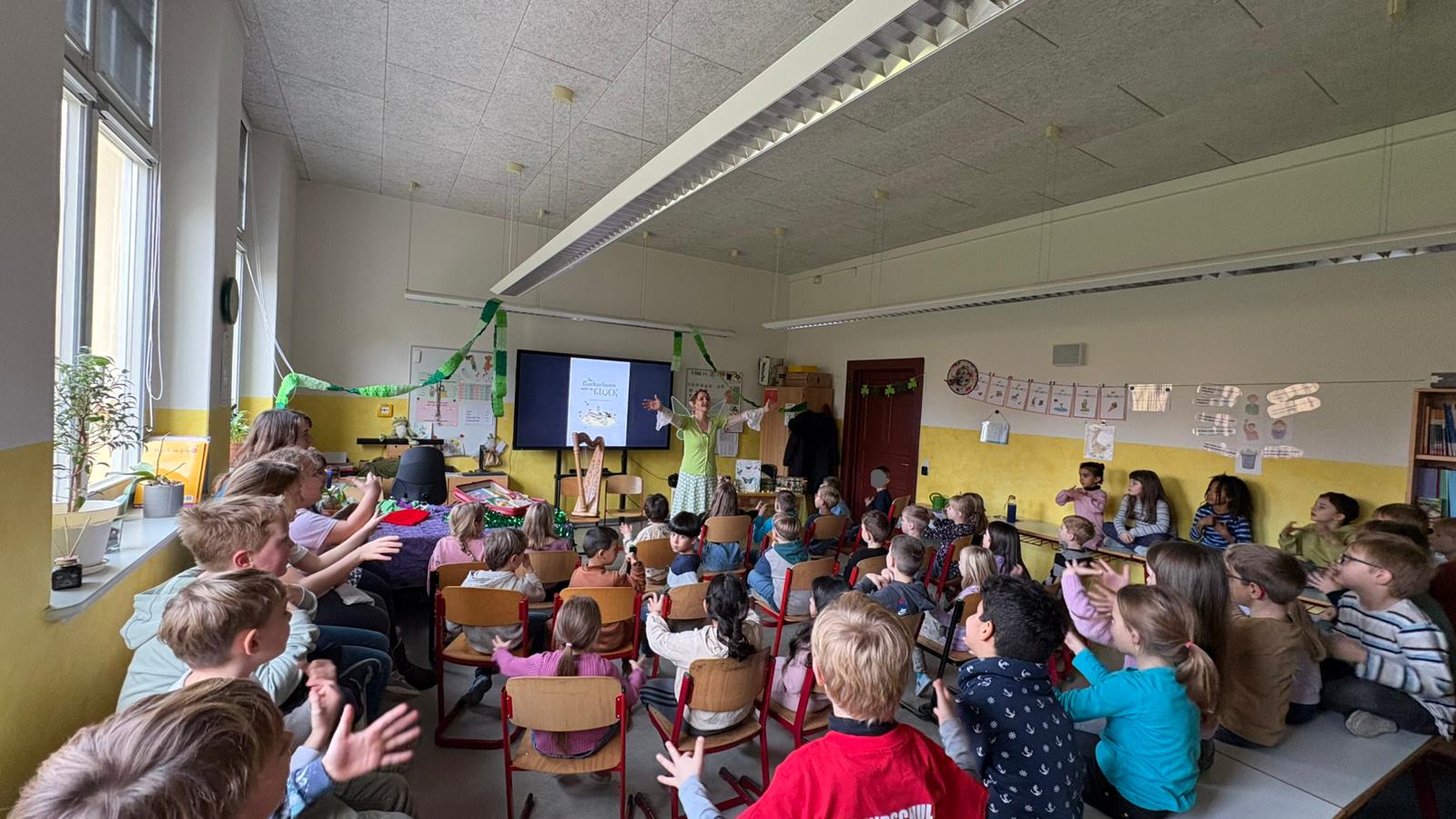 Am 18.11. besuchte die Autorin Frau Herrmann die ersten und zweiten Klassen unserer Schule. Im Rahmen des bundesweiten Vorlesetags überraschte sie die ersten Klassen mit ihrer Geschichte „Das Glücksschwein sucht das Glück“ und die zweiten Klassen mit einer fantasievollen Drachengeschichte. Dabei gestaltete sie ihre Vorlesungen sehr mitreißend und bezog die Kinder mit ein, sodass die Kinder viele tolle Eindrücke von dem Tag mitnehmen konnten.