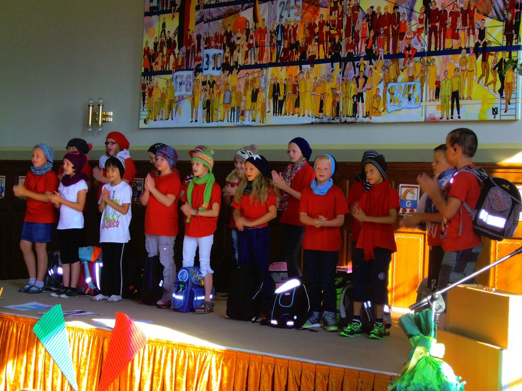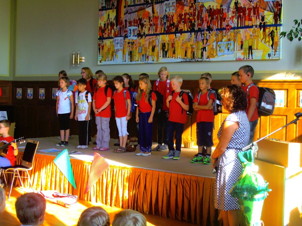 Auch die Schüler der 4. Klassen wollten die Neuen willkommen heißen und hatten gemeinsam mit ihrer Klassenlehrerin Frau Lange ein Programm einstudiert.