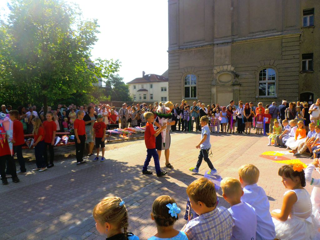 Am Samstag, dem 22.08.2015 kamen die Schulanfänger mit ihren Eltern und Verwandten zur Einschulungsfeier ins Karolinum. Erwartungsvoll und gespannt saßen die Erstklässler mit ihren neuen Ranzen in den ersten Reihen der geschmückten Aula.