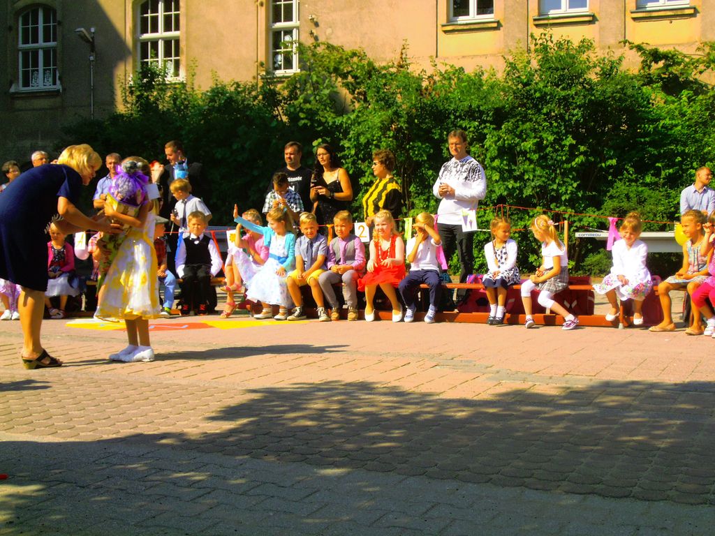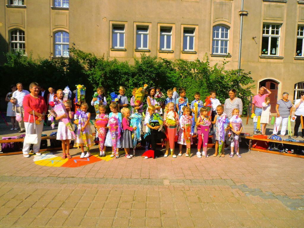 Den krönenden Abschluss bildete die Zuckertütenübergabe auf dem Schulhof. Bei schönstem Wetter übergaben die Viertklässler den Schulanfängern ihre Zuckertüte, auf die sie schon so lange gewartet hatten.